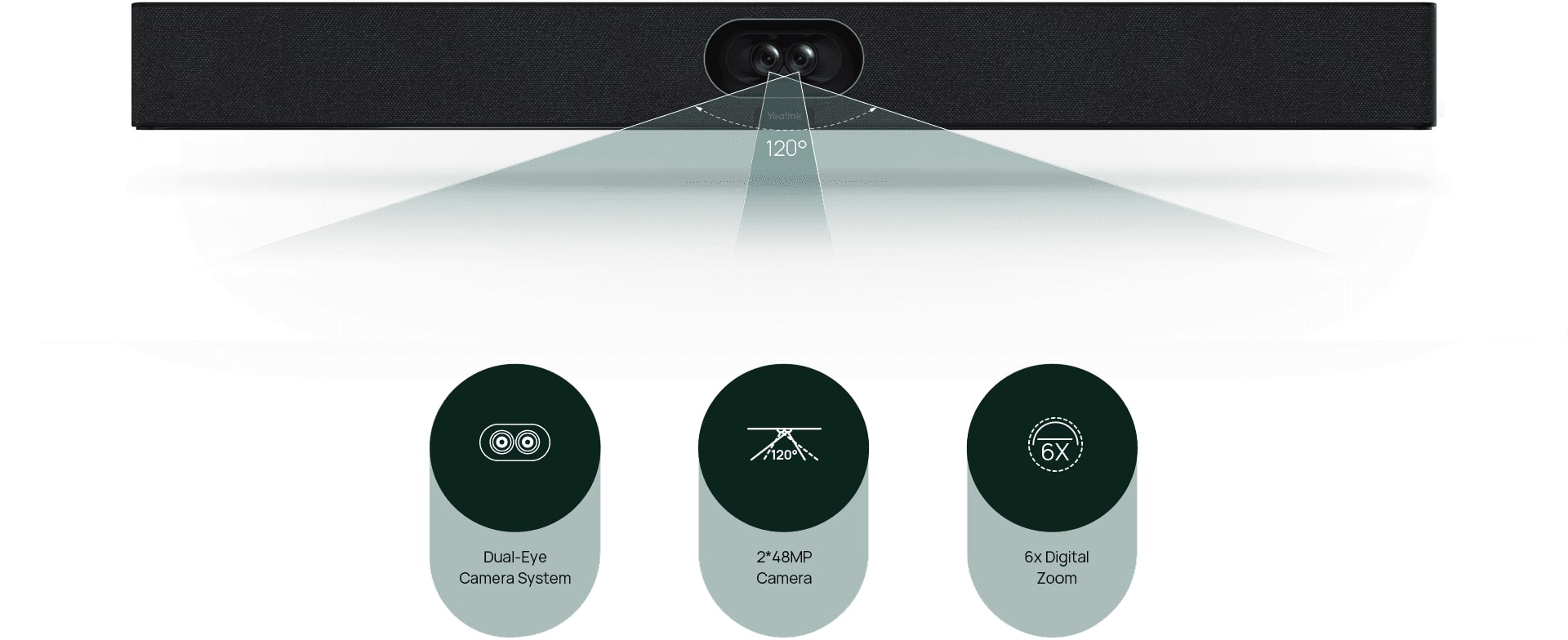 La SmartVision 40 de Yealink est une barre de visioconférence conçue pour les petites et moyennes salles de réunion. Ses deux caméras intégrées vous offrent un large champ de vision, et son zoom x6 vous permet de vous focaliser sur votre interlocuteur tout en maintenant une qualité visuelle parfaite.