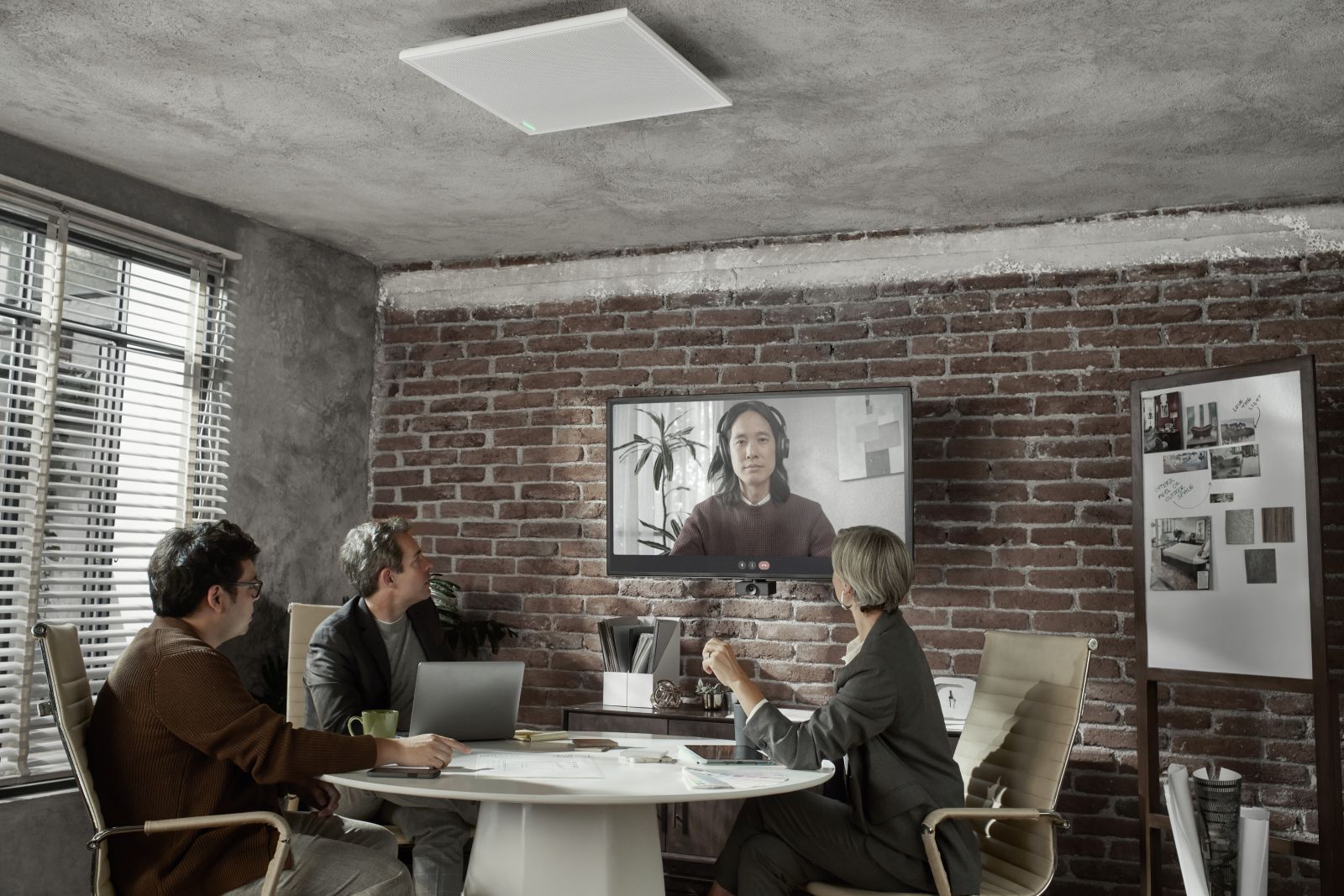 Le Shure MXA902 est conçu pour s’adapter à diverses configurations de salles de réunion. Installé au plafond, ce microphone discret et ergonomique maximise l’espace disponible tout en offrant une qualité audio remarquable. Il est idéal pour les petites salles de réunion comme pour les grandes salles de conférence, grâce à sa capacité à capter le son de manière optimale, quel que soit l’aménagement de la pièce.
