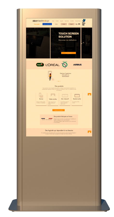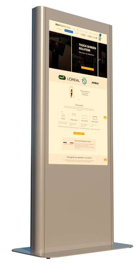 Ce totem tactile intérieur est entièrement conçu en France, garantissant ainsi une qualité de fabrication supérieure. Sa structure en acier carbone ST12 le rend robuste et durable. Aussi, grâce à son écran de qualité (Samsung ou LG), il offre une reproduction fidèle des couleurs et des images (photo ou vidéo). Il est également équipé d'une protection anti-rayures pour une longévité optimale.